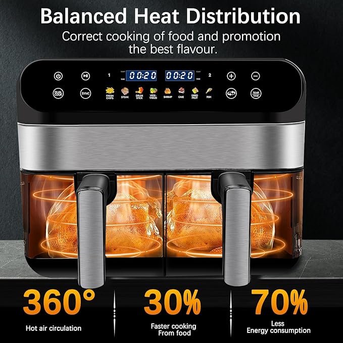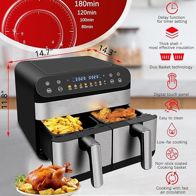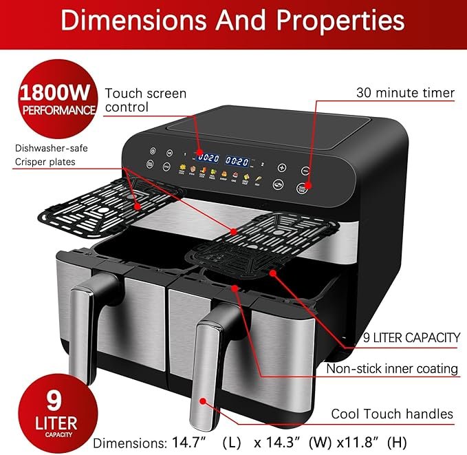 • Modelo: Jacgood Freidora de Aire Doble Cesta 9,5 cuartos