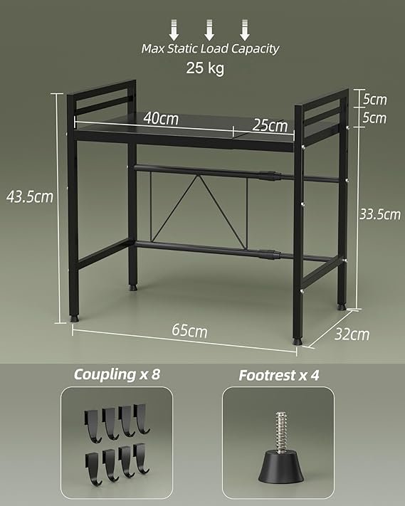 Recomendado para usuarios domésticos que buscan un organizador robusto y versátil para microondas, utensilios y electrodomésticos. Perfecto para cocinas familiares que necesitan maximizar la superficie disponible sin perforar paredes.